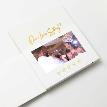 Our video book is more than just a book – it's a time capsule that captures the memories and emotions of your love story. With high-quality video and audio, our video book allows you to relive your special moments with your partner in a way that is both sentimental and nostalgic. A book filled with memories that will transport you back to the moments that made your relationship so special. Whether it's the first time you met, your wedding day, or a collection of special memories, our video book will bring back those sentimental and nostalgic feelings that you'll cherish forever. It's the perfect way to keep your memories alive.