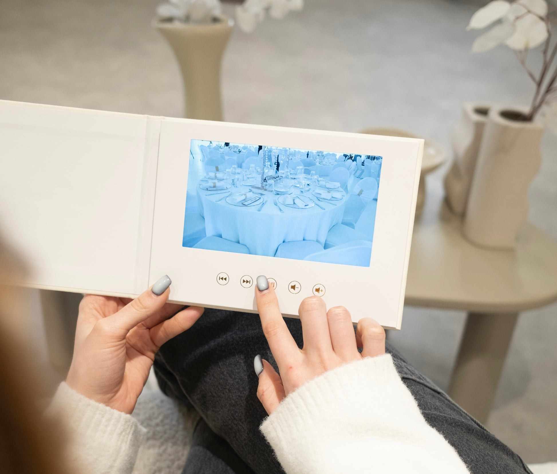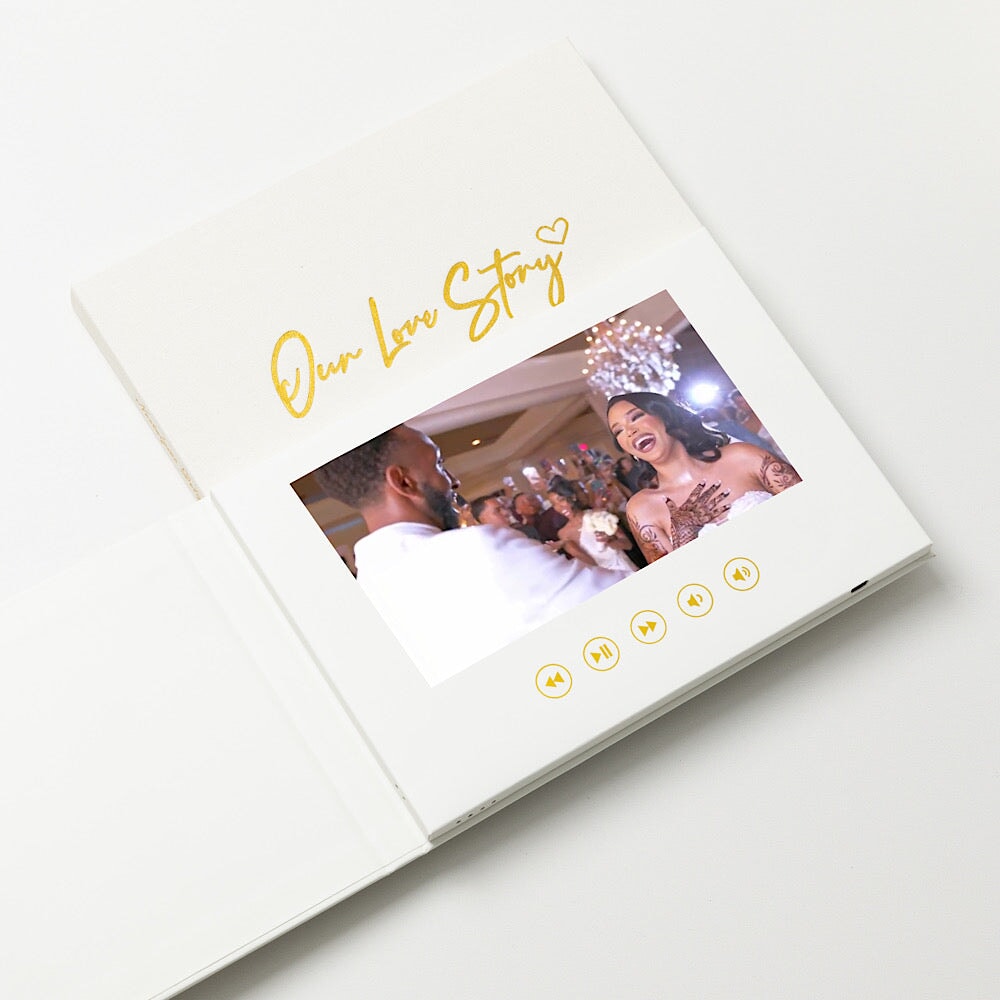 Unplug your Video Book, and voilà, it will automatically play your video. Enjoy the ease and elegance of sharing your memories with our Video Book.