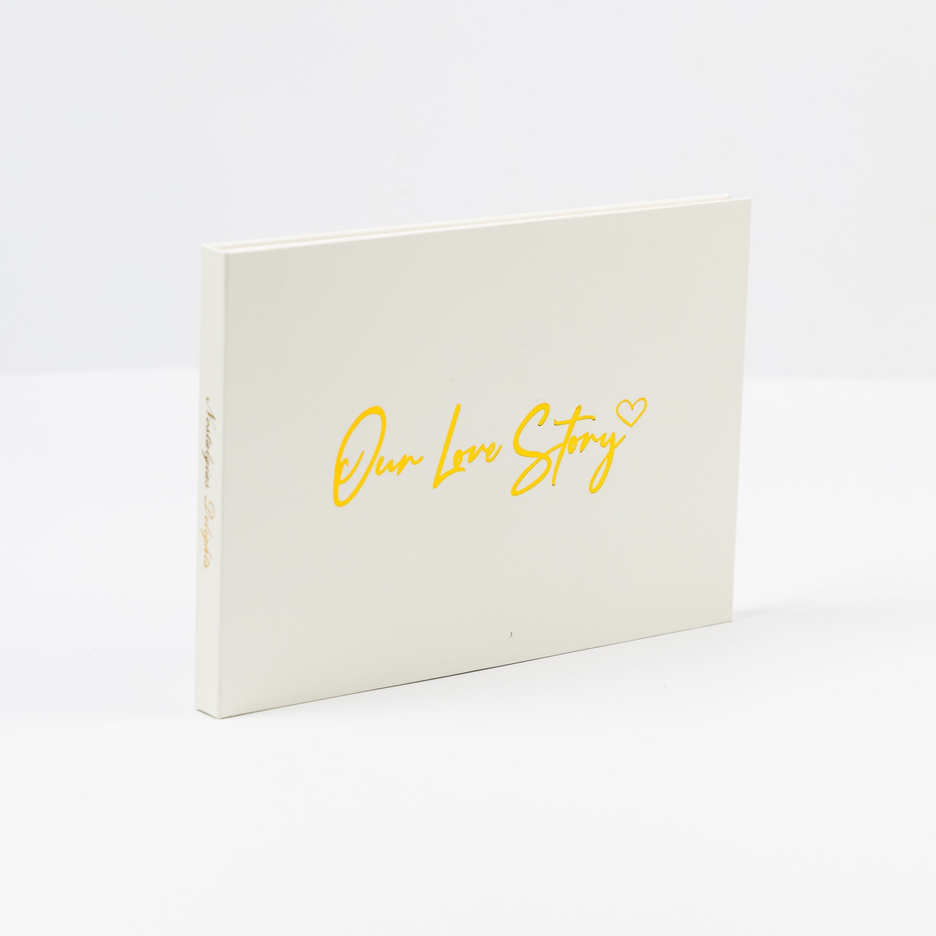 introducing "Our Love Story" Video Book/Album - a timeless keepsake that captures the romance of your unique wedding day. The gorgeous front cover with a smooth Matt finish and elegant gold foil writing flawlessly combines the beauty of your wedding day with this great souvenir